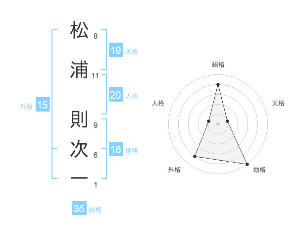 松浦 則次一さんを姓名の画数から五運を鑑定