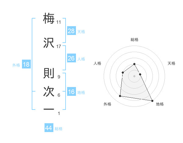 梅沢 則次一さんを姓名の画数から五運を鑑定