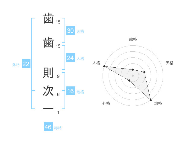 歯歯 則次一さんの総格は46画の1点!
