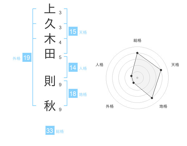上久木田 則秋さんを姓名の画数から五運を鑑定