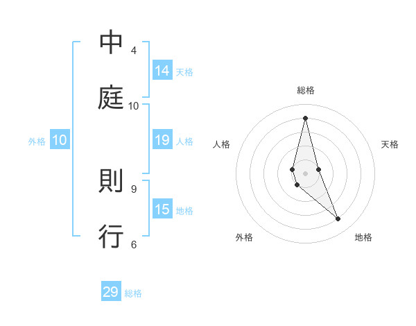 中庭 則行さんの総格は29画の4点!