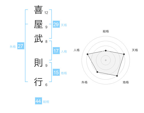 喜屋武 則行さんの総格は44画の2点!