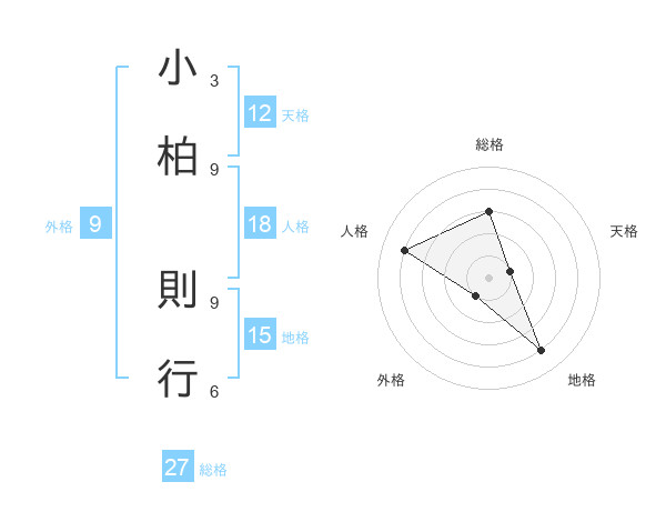 小柏 則行さんの総格は27画の3点!