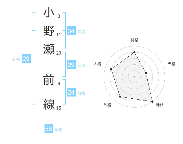 小野瀬 前線さんを姓名の画数から五運を鑑定
