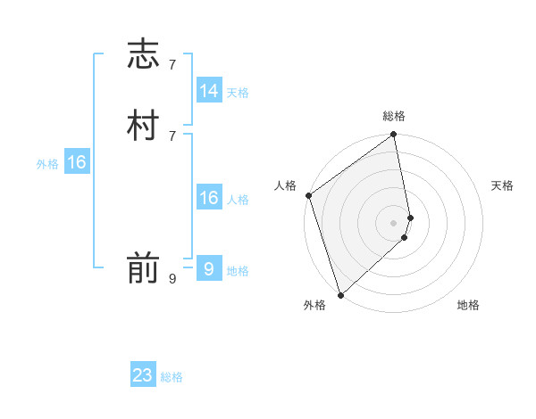 志村 前さんの総格は23画の5点!