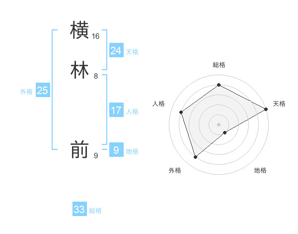 横林 前さんの天格は24画の5点!