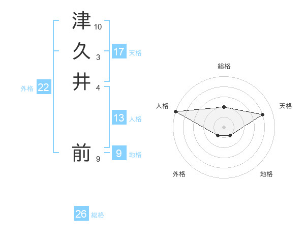 津久井 前さんの総格は26画の2点!