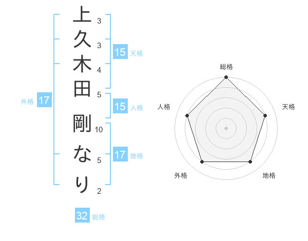 上久木田 剛なりさんの総格は32画の5点!