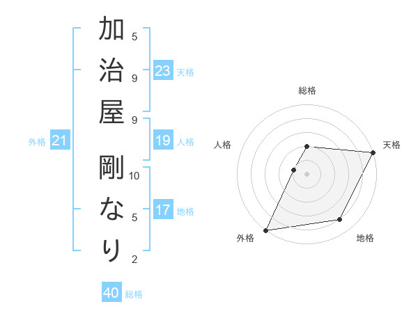 加治屋 剛なりさんの天格は23画の5点!