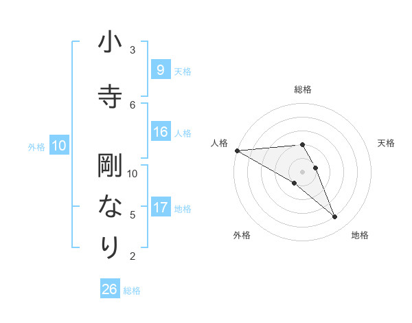 小寺 剛なりさんを姓名の画数から五運を鑑定
