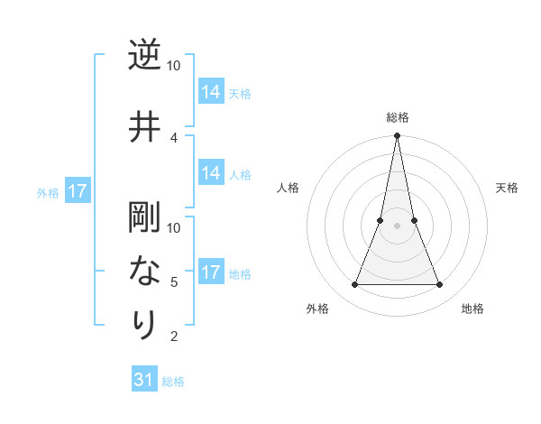 逆井 剛なりさんを姓名の画数から五運を鑑定