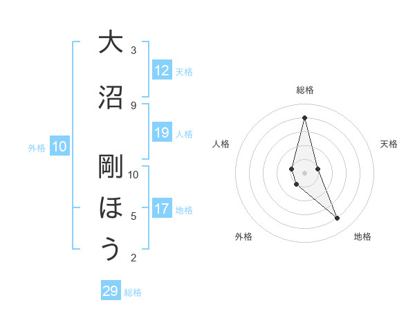 大沼 剛ほうさんを姓名の画数から五運を鑑定
