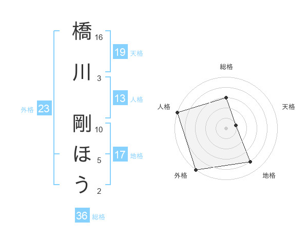 橋川 剛ほうさんを姓名の画数から五運を鑑定