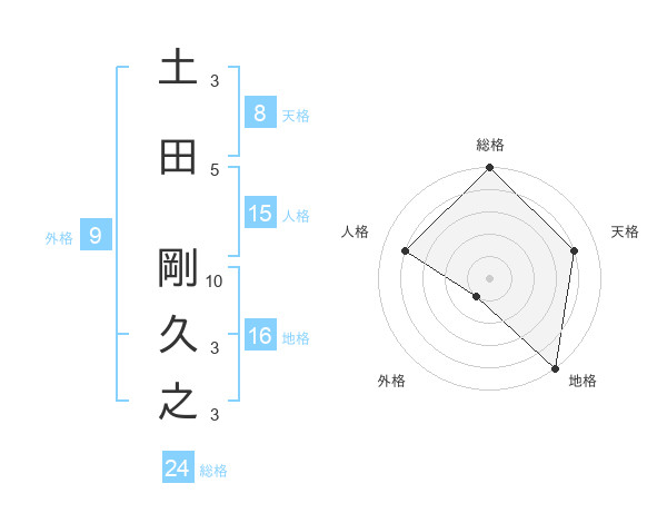土田 剛久之さんの総格は24画の5点!
