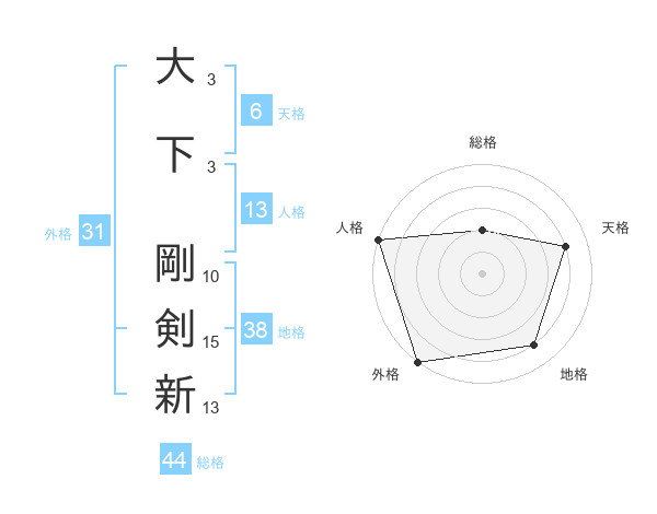 大下 剛剣新さんを姓名の画数から五運を鑑定