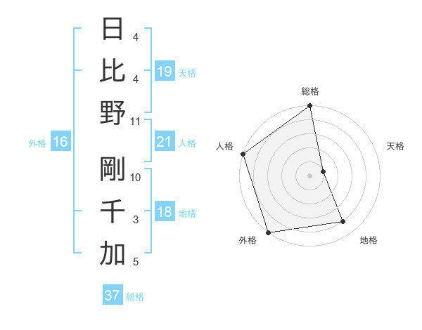 日比野 剛千加さんを姓名の画数から五運を鑑定