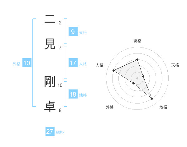 二見 剛卓さんの総格は27画の3点!