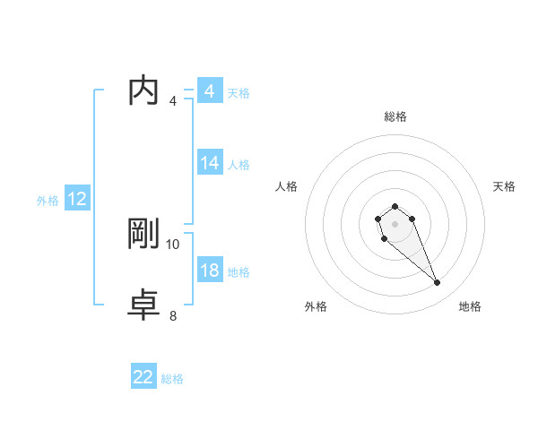 内 剛卓さんの総格は22画の1点!