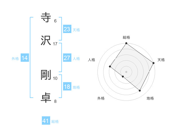 寺沢 剛卓さんの天格は23画の5点!