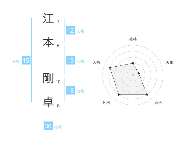 江本 剛卓さんを姓名の画数から五運を鑑定