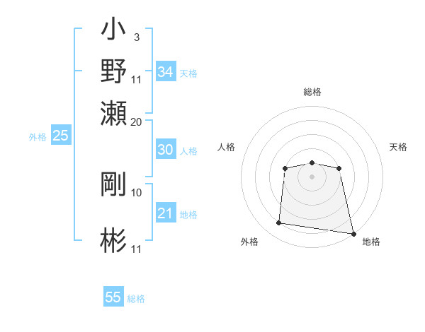 小野瀬 剛彬さんを姓名の画数から五運を鑑定