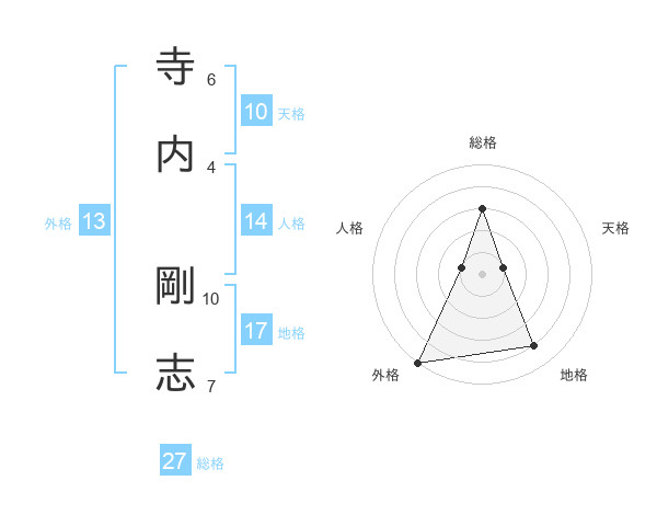 寺内 剛志さんの総格は27画の3点!