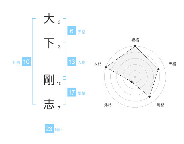 大下 剛志さんの総格は23画の5点!