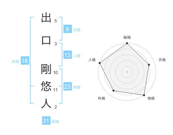 出口 剛悠人さんの総格は31画の5点!