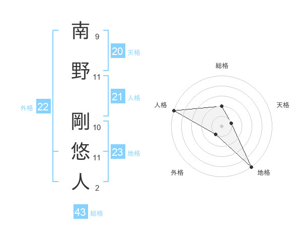 南野 剛悠人さんを姓名の画数から五運を鑑定