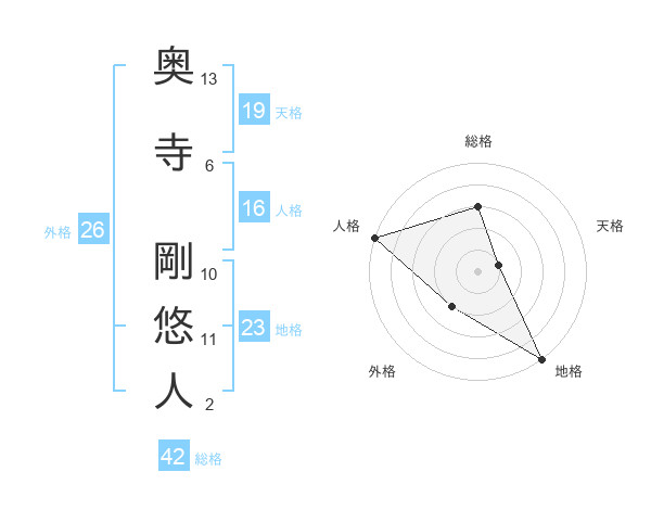 奥寺 剛悠人さんの総格は42画の3点!