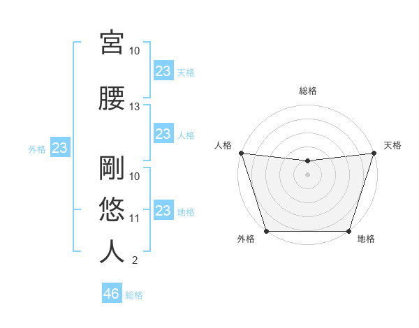 宮腰 剛悠人さんの外格は23画の5点!
