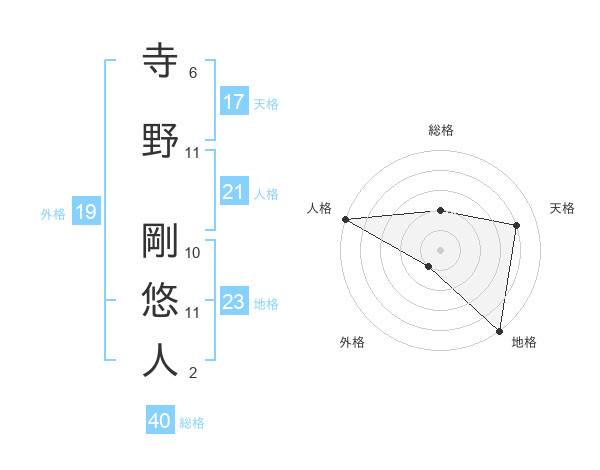 寺野 剛悠人さんの総格は40画の2点!