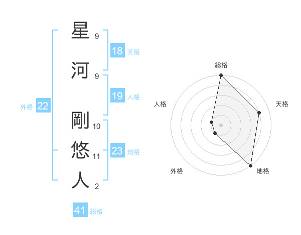 星河 剛悠人さんの外格は22画の1点!