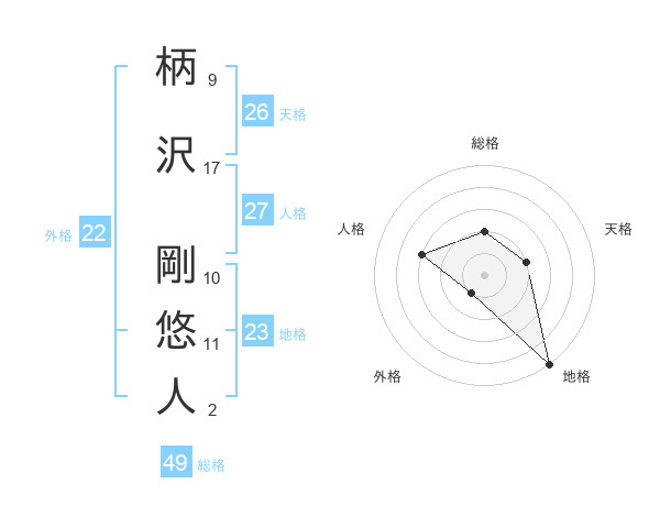 柄沢 剛悠人さんの総格は49画の2点!