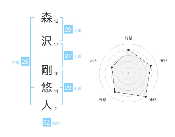 森沢 剛悠人さんを姓名の画数から五運を鑑定
