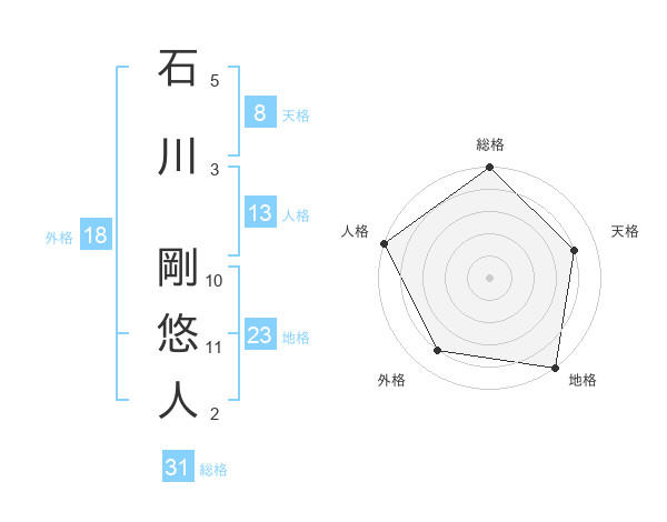 石川 剛悠人さんを姓名の画数から五運を鑑定