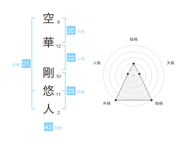 空華 剛悠人さんを姓名の画数から五運を鑑定