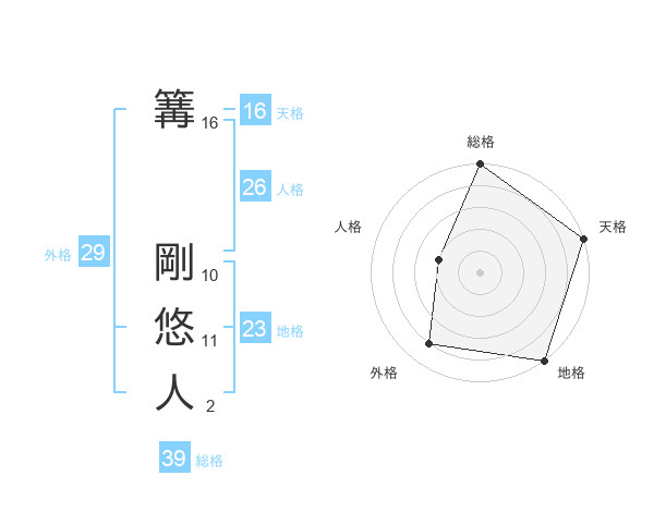 篝 剛悠人さんの総格は39画の5点!