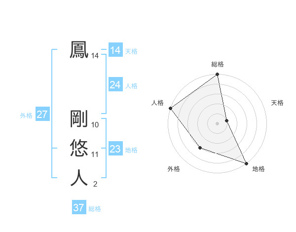 鳳 剛悠人さんの総格は37画の5点!