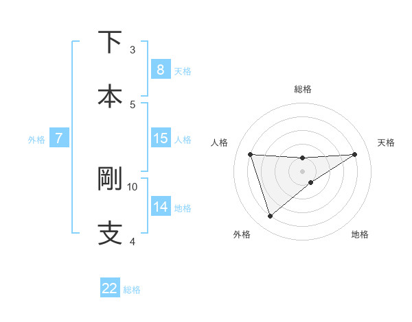 下本 剛支さんの総格は22画の1点!