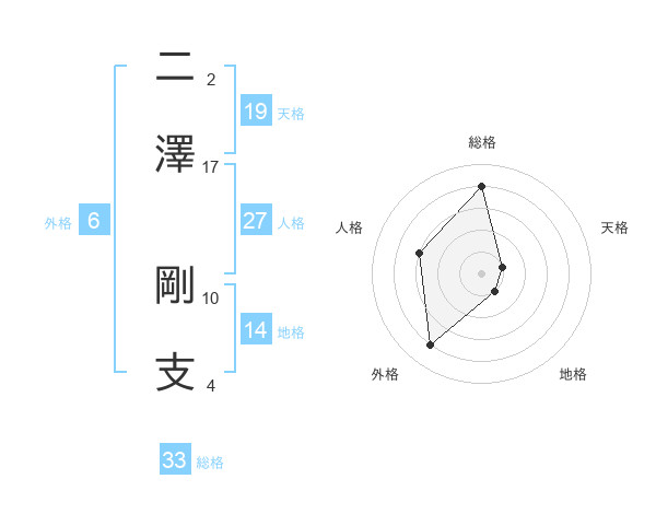 二澤 剛支さんを姓名の画数から五運を鑑定