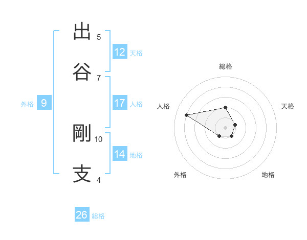出谷 剛支さんの総格は26画の2点!