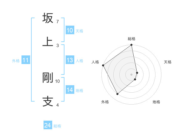 坂上 剛支さんの地格は14画の1点!