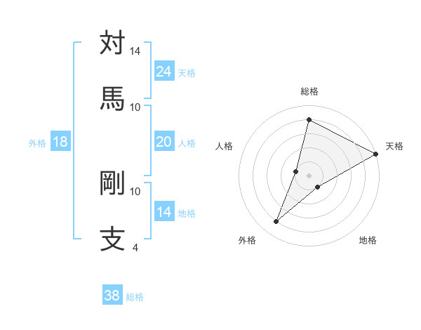 対馬 剛支さんの総格は38画の4点!