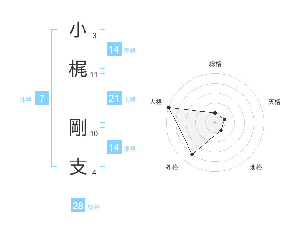 小梶 剛支さんの天格は14画の1点!