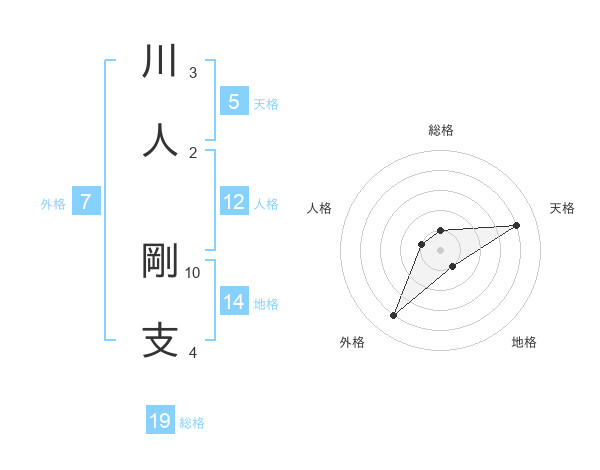 川人 剛支さんの総格は19画の1点!