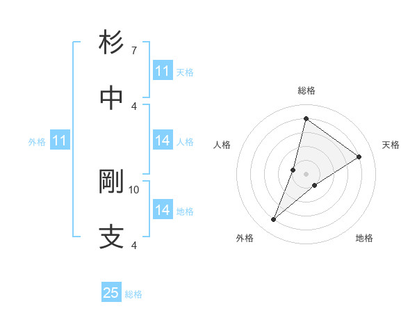 杉中 剛支さんを姓名の画数から五運を鑑定