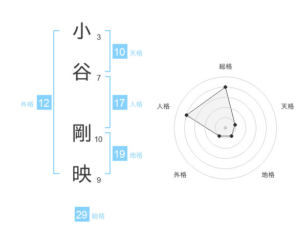 小谷 剛映さんを姓名の画数から五運を鑑定