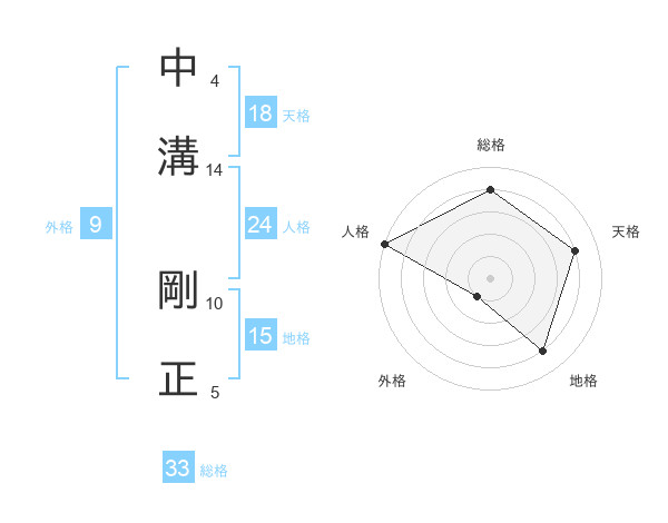 中溝 剛正さんの総格は33画の4点!