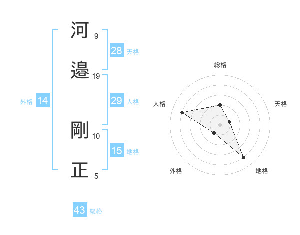 河邉 剛正さんの総格は43画の2点!